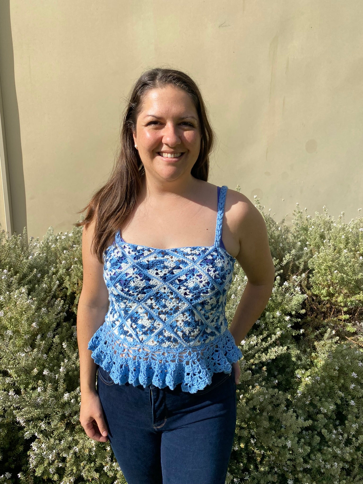 The Granny Peplum is a must-have summer top, and perfect for utilizing leftover yarns. This pattern is great for beginners, fun to make and feature the unique crochet icon- the granny squares, with a bit of tweak!